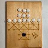 Are you a checkers fan? This game has similar moves of checkers. The twist is only the fox (black game piece) can jump. White game pieces (geese) try to trap the fox by surrounding him so he cannot move anywhere.