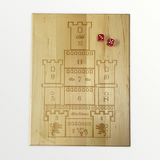 The board is divided in fields numbered from 2 to 12 (with 4 often left out), arranged in the form of the rooms of a house. Each player rolls two dice.