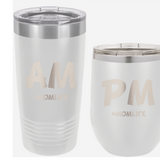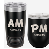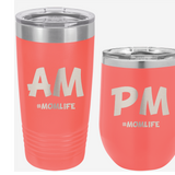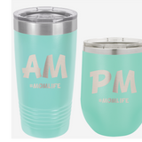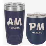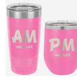 Cheers to moms who need a little bit of everything! Our Mom Tumbler Bundle features 1 "AM" tumbler for the day, and 1 "PM" for the night! She'll enjoy her morning coffee with a smile, and her evening wine with an even bigger (but more subtle) grin. Treat her to the perfect bundle of tumblers! You can even pick her favorite color for the tumblers!
